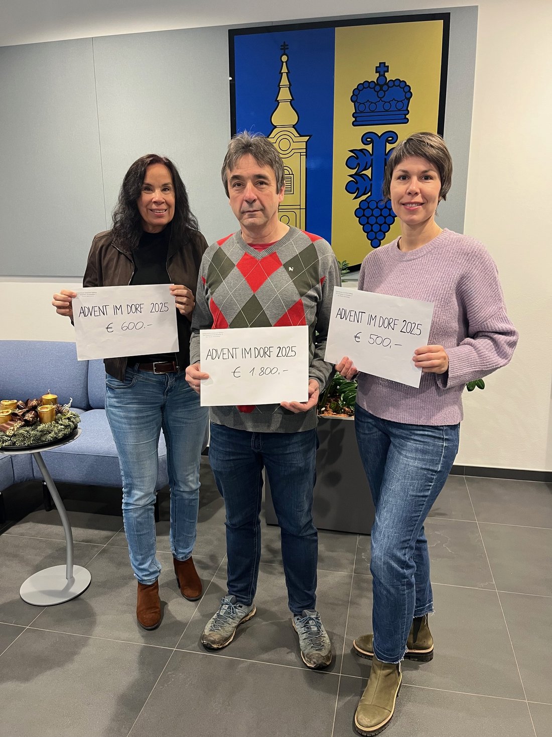 Der Spendenerlös von Advent im Dorf 2025 wurde am 19. Dezember 2025 von Bürgermeister Herbert Pinter und Gemeinderätin Barbara Fekete, BA an die Referatsleiterin der Kinder- und Jugendhilfe BH Mattersburg, DSA Dagmar Matouschek, für Familien in Not, übergeben.
